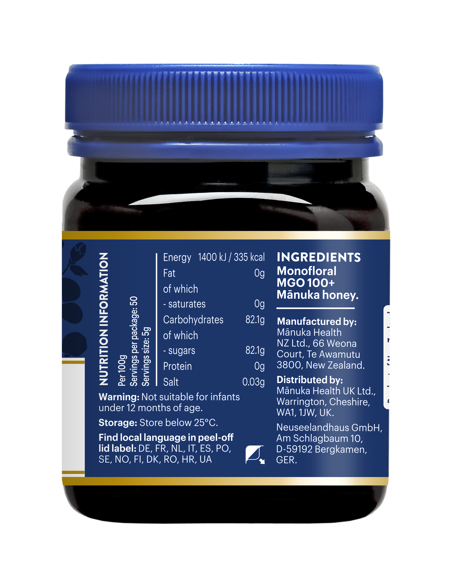 INGREDIENTS: 100% New Zealand MGO™ 100+ Manuka Honey